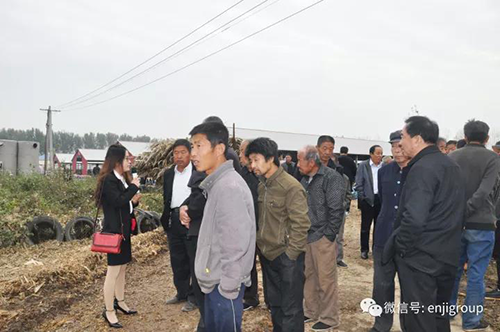 2017年10月12日,恩際集團董事長攜總經理、辦公室主任、小營鄉(xiāng)政府各級領導、各片片長、全體包村干部、各村支部書記、村委會主任、貧困戶代表、貧困村第一書記一行100余人來到鹽山欣發(fā)牧業(yè)進行參觀考察。